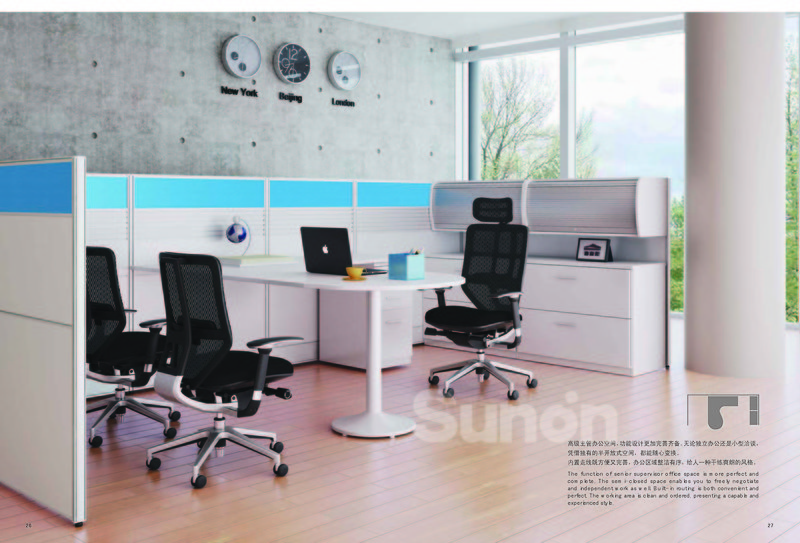高級主管居家空間,功能設計更加完善齊備,無論獨立居家還是小型洽談,憑借獨有的半開放式空間,都能隨心變換,內置走線即方便又完善,居家區域整潔有序,給人一種幹練爽朗的風格。